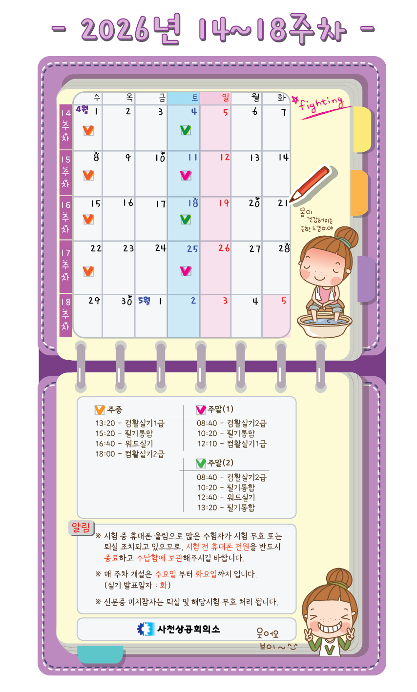 | ▲ | 2026년 18~22주차 상시검정 일정 안내 |